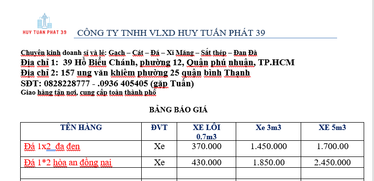 Bạn đang quan tâm đến báo giá đá trong tháng 5/2023? Trong ngành xây dựng, đá là một vật liệu quan trọng được sử dụng trong nhiều công trình. Trong bài viết này, chúng tôi sẽ cung cấp cho bạn thông tin cập nhật về báo giá đá tháng 5/2023 và giới thiệu công ty VLXD Huy Tuấn Phát 39, một địa chỉ tin cậy trong lĩnh vực vật liệu xây dựng.